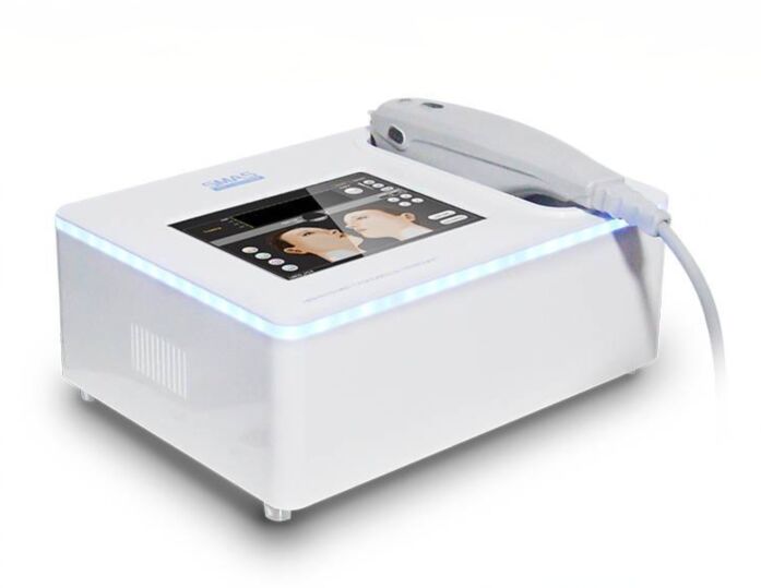Αυτή η συσκευή χρησιμοποιεί την πιο προηγμένη ενέργεια υπερήχων, βαθιά διείσδυση στο βαθύ χόριο και στο στρώμα SMAS, παράγει σχεδόν δέκα χιλιάδες σημεία συμπύκνωσης, παράγει κολλαγόνο, ίνες που παράγονται και αμέσως συρρικνώνονται και διεγείρουν το κολλαγόνο και νέο ανασυνδυασμό, κατασκευάζοντας νέο δίκτυο ινών κολλαγόνου για ενίσχυση της ελαστικότητας από το κάτω μέρος του δέρματος για το δέρμα.